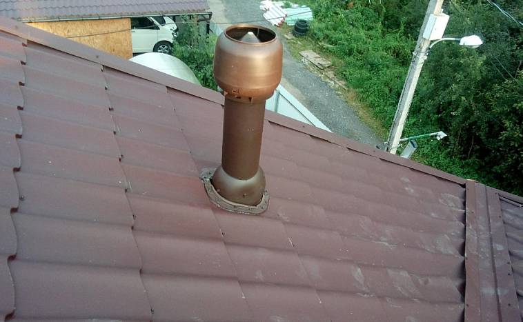Une telle installation est nocive pour votre toiture. De la colonne montante souffler de l'air chaud et humide, qui commencera à se déposer sur les structures internes de sous-toiture avec un condensat non faible. Ainsi, tout le bois deviendra humide et progressivement recouvert de champignons. Et en hiver, l'humidité déposée se transforme en glaçons et en glace. Par conséquent, si vous apportez une ventilation, elle se trouve sur le toit.