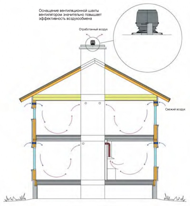 > Dans une maison particulière, le refoulement se produit pour d'autres raisons, car la ventilation de l'appartement est différente du système de ventilation d'une maison particulière. C'est là que l'installation de ventilateurs peut résoudre le problème. Mais il vous suffit de déterminer l'emplacement d'installation des différentes colonnes montantes.