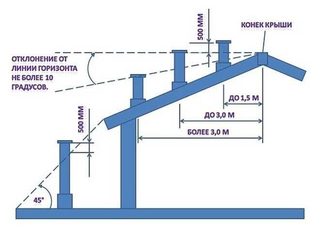 - Si la maison a un grenier utilisé, la hauteur de la sortie doit être augmentée à trois mètres.