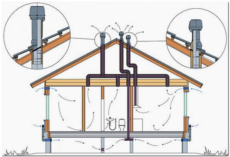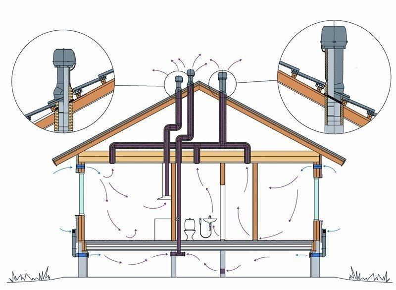 > Pour cette raison, cela ne peut pas arriver dans une maison privée, car au stade de la conception, ils essaient aujourd'hui de distribuer les conduits de ventilation dans toutes les pièces séparément. C'est-à-dire que la cuisine a sa propre colonne montante, les toilettes et la salle de bain ont la leur. Mais parfois, il y a un autre problème dans la maison. Le plus souvent, les colonnes montantes sont combinées en un ou deux canaux communs à l'intérieur du grenier, puis un ou deux tuyaux sont conduits à travers la toiture. Et ici, des sections horizontales apparaissent dans le système de ventilation. La tâche principale du concepteur est d'utiliser le moins possible ce type de conduit et de minimiser l'angle d'inclinaison des sections horizontales (la diminution doit être minimale). Autrement dit, plus cette section est raide, meilleur est le mouvement ascendant de l'air.