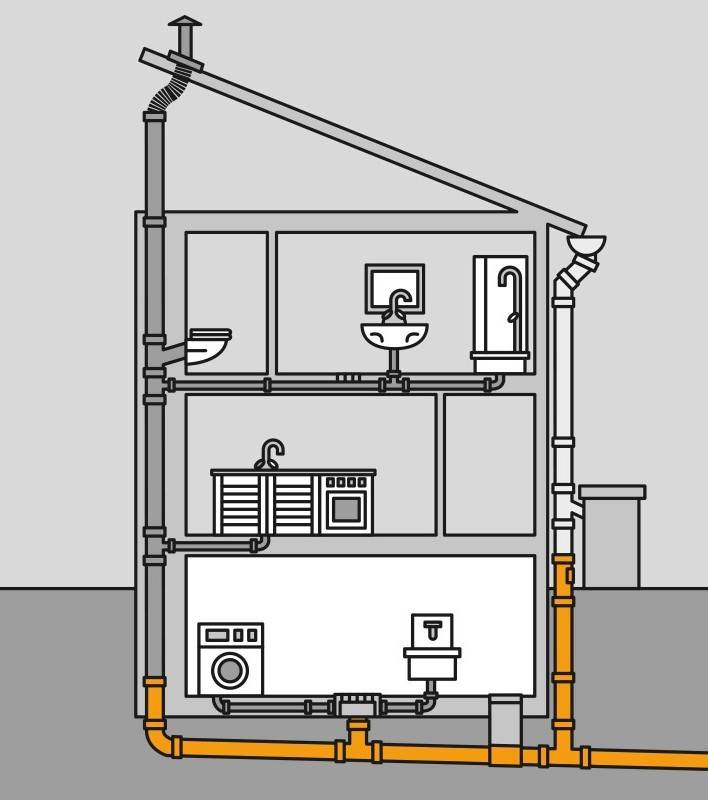 Les tâches de l'assainissement domestique intra-maison comprennent le transport des effluents du bâtiment vers un système d'égout externe. Pour son fonctionnement efficace, une bonne ventilation est nécessaire, qui est assurée par des colonnes montantes équipées de tuyaux de ventilateur.