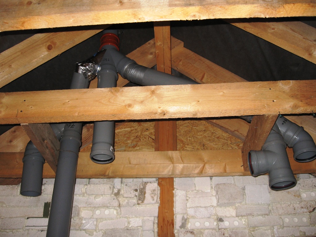Dans votre cas, combiner des tuyaux dans une colonne montante commune se suggère. C'est une bonne décision. Mais la sortie uniquement au grenier ne vaut pas la peine d'être faite. Bien que vous ne l'utilisiez pas (à en juger par la taille), tout l'espace pue les «arômes» de l'égout et, très probablement, l'odeur se fera sentir sur le sol du grenier.