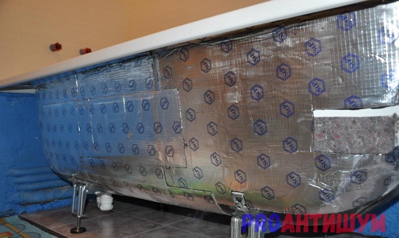 L'insonorisation d'un bain en acier avec de la mousse de polyéthylène est également considérée comme une méthode efficace pour réduire la capacité de résonance des parois du produit de vos propres mains. Pour éliminer l'excès de bruit qui se produit lors de l'utilisation d'un bol en acier, un matériau conventionnel est utilisé pour réduire en même temps sa conductivité thermique - feuille ou métallisé. Le polyéthylène expansé est produit sous forme de tapis auto-adhésifs, qui sont fixés sur le fond comme suit :