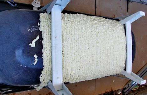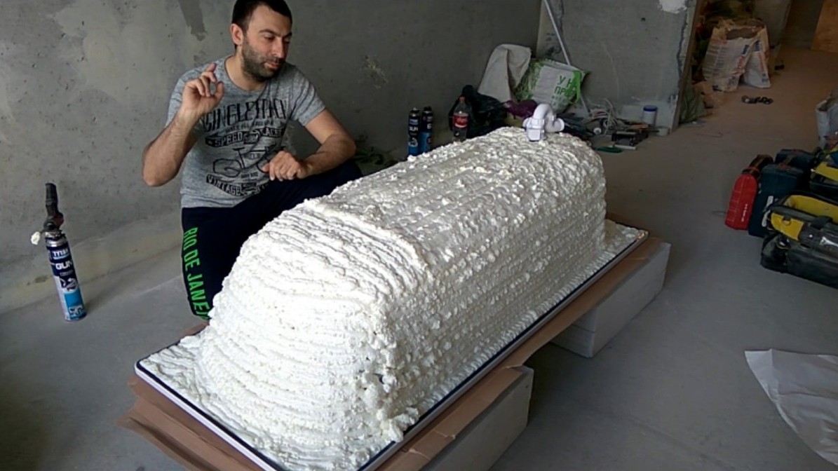 Un film de polyéthylène aidera à améliorer l'effet. Polyéthylène approprié utilisé par les résidents d'été pour créer des serres. Il est dense, peu coûteux et assez élastique.Après avoir appliqué la mousse, recouvrez-la d'un morceau de film préparé à l'avance. En appuyant plus fort avec vos mains, formez une croûte ressemblant à une coquille.