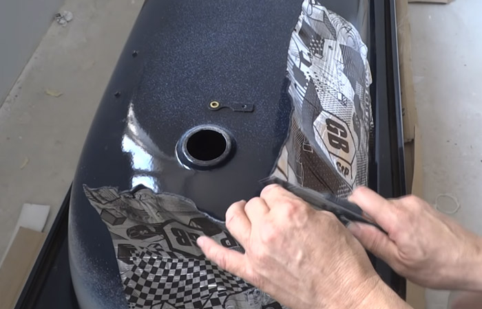 • La surface extérieure du bol est nettoyée de la saleté et de la poussière, dégraissée. Le trou de vidange et de trop-plein est protégé par du ruban adhésif.