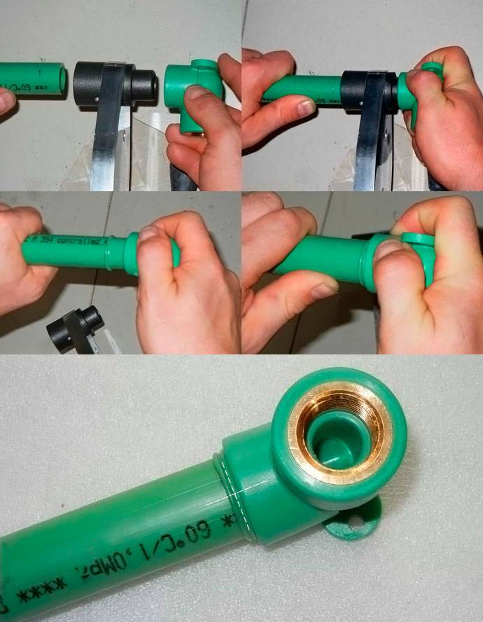 Le soudage utilise la diffusion du matériau, grâce à laquelle se produit la repolymérisation - un processus dans lequel les deux parties se transforment en un seul ensemble, en un monolithe. La température de chauffage est affectée par le diamètre et l'épaisseur de paroi des pièces jointes, ainsi que par le matériau à partir duquel la couche de renfort est fabriquée. Afin de pouvoir connecter le polypropylène au métal, des raccords combinés sont produits. L'un d'eux est en métal, ayant un fil, l'autre est en polymère.
