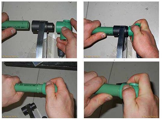 La condition principale du succès de l'opération est la coïncidence des paramètres (diamètre, épaisseur de paroi) des éléments connectés. Ces raccords sont reliés aux tuyaux par brasage ou soudage. Les deux éléments sont chauffés à la température de fusion et rapidement, à l'état chaud, s'amarrent. Après 5 à 10 secondes, on les laisse refroidir. À la suite d'actions simples, une connexion absolument étanche est obtenue.