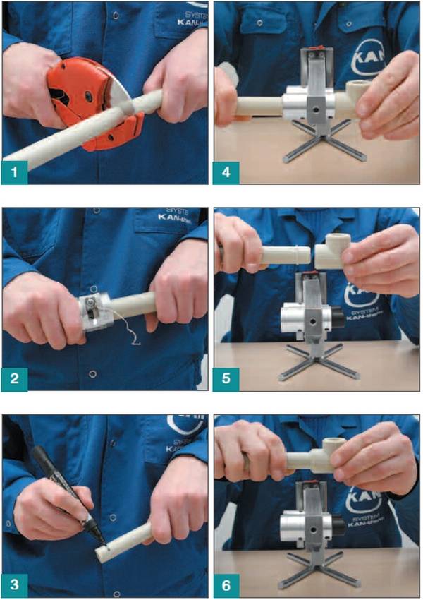 La clé du succès est de terminer le nombre maximum de nœuds dans une position sur l'établi. Il est préférable d'effectuer des travaux de soudure de tuyaux PPR avec un assistant, car avec l'auto-assemblage, il est facile de se tromper.