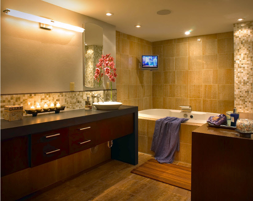 Vu le plan des zones humides, affiché au début de cet article, il est possible et nécessaire de faire du bain une pièce ennuyeuse dans laquelle il est agréable et confortable de se trouver. Tout dépend des souhaits de chacun.
