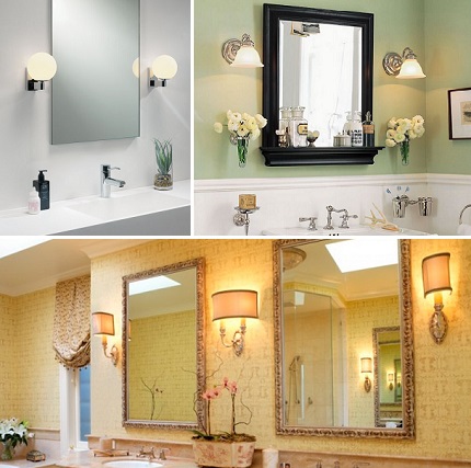 L'option la plus pratique qui aidera à concevoir efficacement même une petite salle de bain. Il est préférable de choisir une applique murale pour une lampe ou un spot. Les appliques de salle de bain conventionnelles ne conviennent pas pour deux raisons :