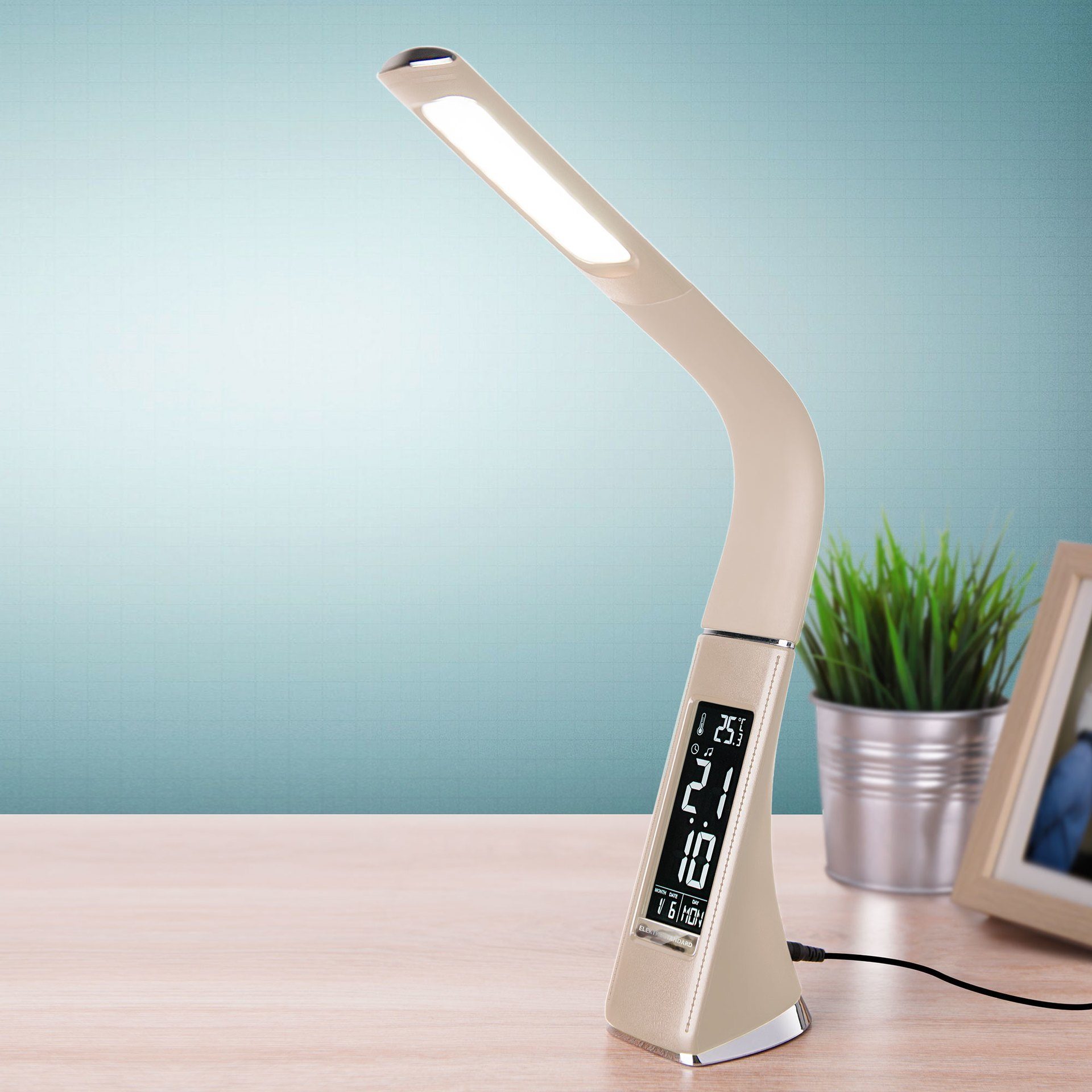 Un standard électrique est une lampe à pince à linge. Il dispose d'un variateur à trois étages, assez élégant, adapté à une chambre d'enfant ou à un bureau. Les LED lumineuses offrent une bonne visibilité de la lumière, le contrôle est simplifié à l'aide d'un capteur et les raccords flexibles permettent d'incliner et de faire pivoter la lampe à 360 degrés. Entièrement en plastique.