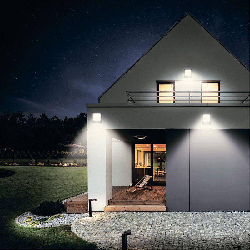 - Le boîtier carré est conçu pour une répartition uniforme de l'éclairage sur une grande surface, c'est cette forme de boîtier qui est généralement équipée d'un relais photo et d'un détecteur de mouvement ;