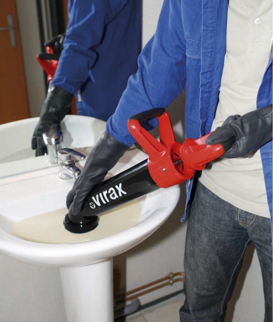 Une condition importante est la présence d'eau, qui doit recouvrir le bol en caoutchouc. Ensuite, vous devez appuyer fortement et rapidement sur la poignée du piston jusqu'à 3 fois