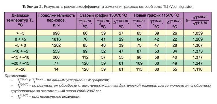 La transition de 115 ° C à la valeur de température requise est assurée par des échangeurs de chaleur à plaques ou à calandre. Dans les centrales de cogénération, les échangeurs de chaleur reçoivent la vapeur d'échappement des turbines pour produire de l'électricité. Selon les exigences réglementaires, la température de l'eau dans les tuyaux de chauffage ne doit pas dépasser 105 ° C, la limite inférieure dépend des conditions extérieures.Dans cette gamme, le chauffage de l'eau du réseau de chauffage est régulé en fonction de la météo, pour laquelle chaque chaufferie dispose d'un graphe de température du système de chauffage. Pour les réseaux domestiques, 2 grilles de calcul sont utilisées :