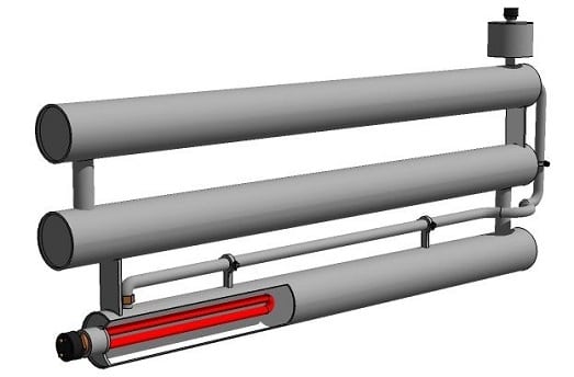 Tubulaire. Le plus courant. Le principe de fonctionnement est d'échanger les températures de manière convective - le remplacement des masses chaudes par des masses froides. Il est utilisé dans les chaudières électriques, chauffe-eau, radiateurs à mazout et autres unités.