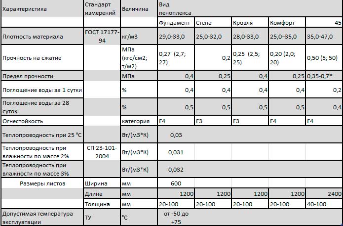 Penoplex 45. Ce matériau a une densité de 35 à 47 kg / m³ et est utilisé comme élément chauffant pour les revêtements routiers, en particulier les pistes, pour les empêcher du soulèvement du sol par le gel et de la destruction de la couche supérieure de la toile. Il est également largement utilisé pour l'isolation des toitures exploitées, sur lesquelles se situent des zones piétonnes et divers sites, dont des parkings.