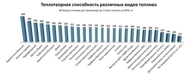 La capacité de combustible la plus élevée est observée dans le charbon à coke. La pierre, le bois, le charbon brun, l'anthracite ont également de bonnes caractéristiques.