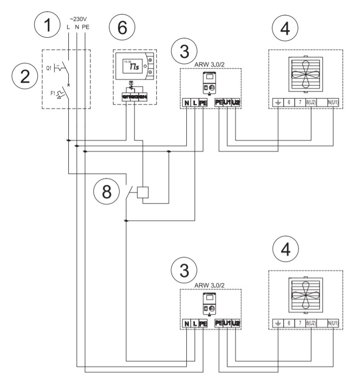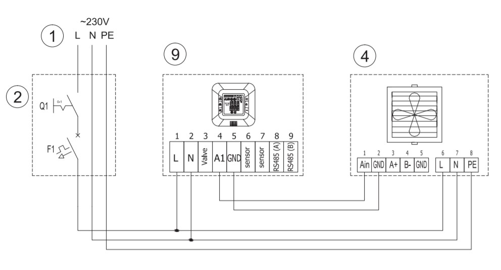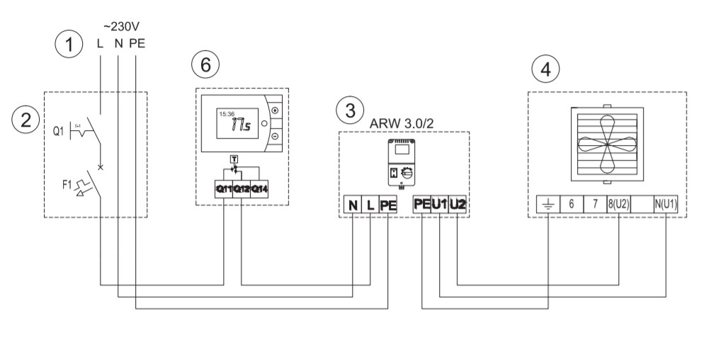 Pour conduire l'air à travers les échangeurs de chaleur, ces aérothermes utilisent des moteurs électriques d'une puissance de 0,28 kW et d'un niveau sonore de 56 dB. Ils sont alimentés par un réseau monophasé avec une tension de 220-230 V. La vitesse de rotation des moteurs électriques est de 1380 tr/min.
