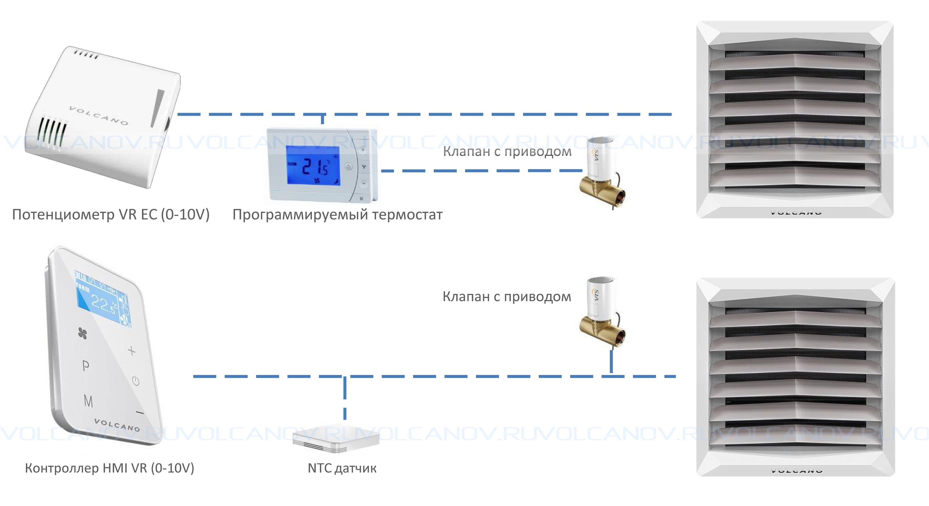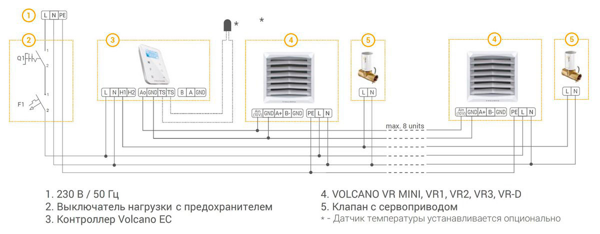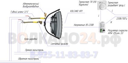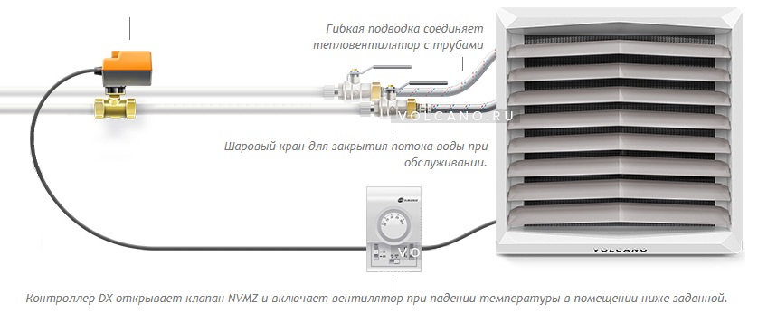Les unités sont extrêmement faciles à utiliser et l'installation nécessitera une connexion à un système d'eau chaude, qui peut être fourni par une chaudière de chauffage supplémentaire. Le ventilateur souffle de force l'échangeur de chaleur Volcano, qui a une structure spéciale de son circuit ressemblant à un labyrinthe.