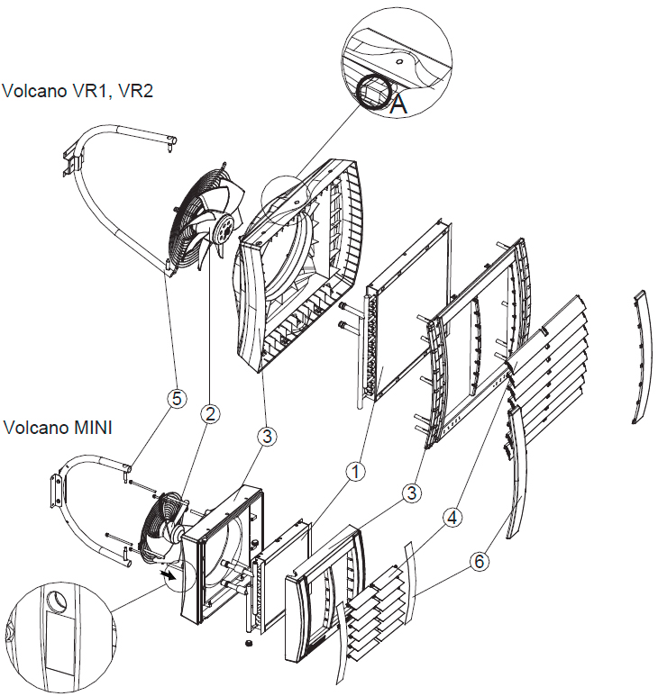 L'échangeur de chaleur du volcan vr1 doit être régulièrement nettoyé de la poussière et de la saleté. Surtout avant la saison de chauffage, nous recommandons de nettoyer l'échangeur de chaleur avec de l'air comprimé du côté de la grille. Le moteur du ventilateur du volcan vr1 ne nécessite pas beaucoup d'entretien. Le seul entretien concerne le ventilateur. Lorsqu'elle est sale, vous pouvez nettoyer la grille de protection de la poussière et de la saleté. Si le volcan vr1 n'est pas utilisé pendant une longue période, l'équipement doit être déconnecté de la source d'alimentation. Il y a un risque que l'échangeur de chaleur du volcan vr1 se dégivre si la température ambiante descend en dessous de 0°C et que la température du fluide de chauffage chute en même temps, en particulier lorsque des vannes à deux voies sont utilisées.