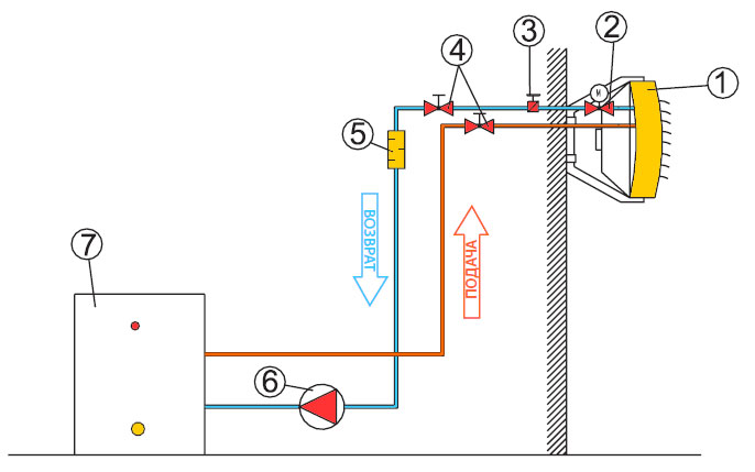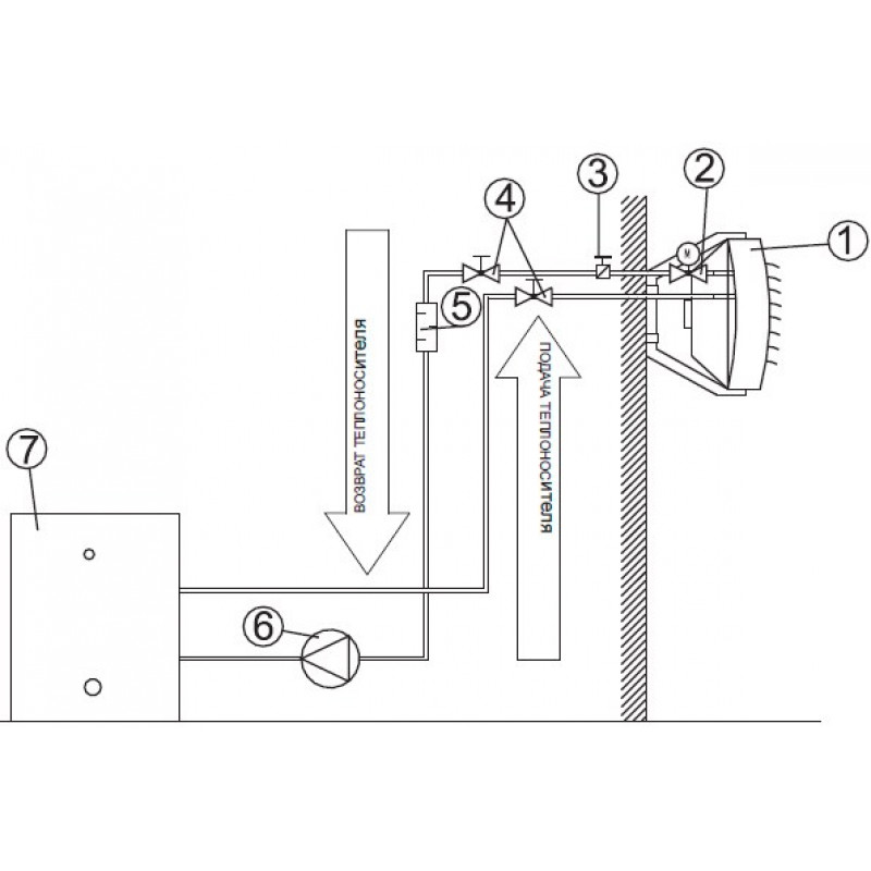 Lors du montage du radiateur soufflant sur le mur, la distance entre celui-ci et la surface ne peut pas être inférieure à 0,4 m. Dans le même temps, la hauteur de l'appareil ne doit pas dépasser 8 m.