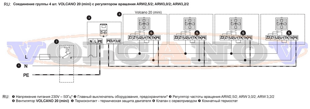 Cette gamme de modèles comprend des aérothermes Vulcano Mini d'une puissance de 3 à 20 kW. Leur conception prévoit deux échangeurs de chaleur pouvant recevoir un liquide de refroidissement d'une température allant jusqu'à +130 degrés.La puissance des moteurs électriques utilisés est de 0,115 kW à une vitesse de 1450 tr/min. Le flux d'air provenant des entrailles de ces ventilateurs se propage jusqu'à une distance de 14 mètres, assurant le chauffage de pièces assez grandes. Lorsque vous travaillez en position verticale, la hauteur du jet chaud peut atteindre 8 mètres.