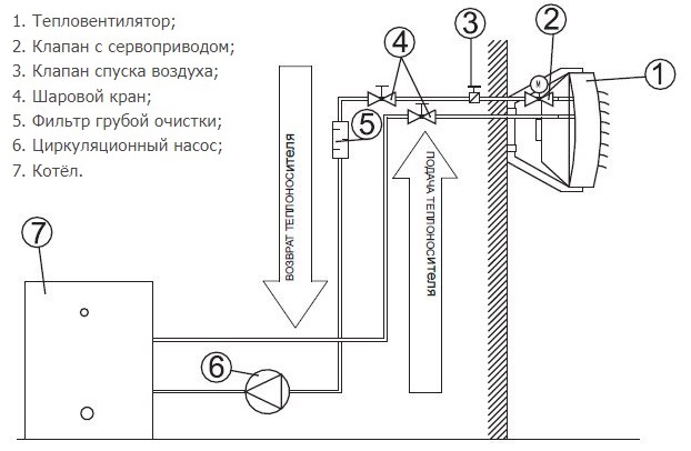 Dans les ateliers de réparation automobile, il est nécessaire de choisir le bon endroit pour installer l'appareil, et il est également nécessaire de le connecter au système de chauffage et d'éliminer la possibilité de violer l'intégrité des tuyaux par lesquels le liquide de refroidissement est fourni. Un facteur important lors du choix d'un site d'installation est la possibilité de passage sans entrave d'un jet d'air chauffé.