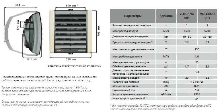 Comme vous pouvez le voir, le radiateur soufflant Volcano a de bons paramètres techniques. Il augmente l'efficacité du système de chauffage existant et crée les conditions les plus confortables pour le fonctionnement d'une installation industrielle, commerciale ou sportive.