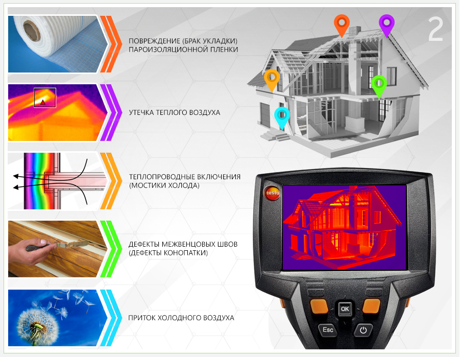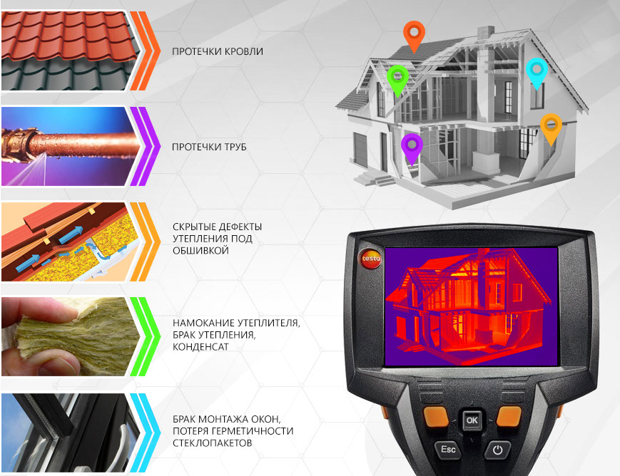 À ce stade, il est très important de procéder à un diagnostic approfondi, car les zones sur le même plan diffèrent considérablement et les récepteurs de rayonnement thermique le montreront certainement. Après avoir vérifié la partie extérieure, ils procèdent à des mesures de diagnostic à l'intérieur du bâtiment résidentiel
