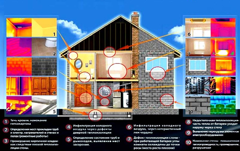 Une inspection d'un chalet, d'une datcha ou d'un bâtiment résidentiel avec une caméra thermique de bâtiment permet de voir sur le thermogramme ce qui se passe à l'intérieur de divers objets et structures du bâtiment, sans les toucher du tout. C'est ce qu'on appelle le contrôle non destructif.