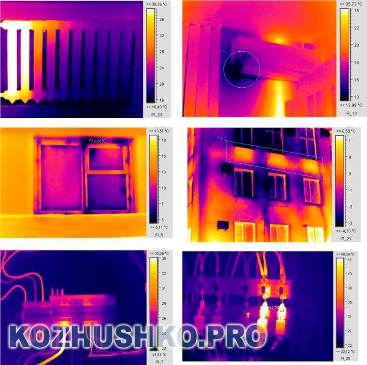 L'inspection d'une installation résidentielle s'effectue tant à l'extérieur qu'à l'intérieur du bâtiment. Dans le premier cas, la photographie infrarouge permet de détecter les défauts grossiers d'infiltration des flux d'air à travers l'enveloppe du bâtiment et les défauts d'isolation thermique. Dans le second - pour identifier les erreurs dans le fonctionnement du système de chauffage et du réseau d'alimentation.