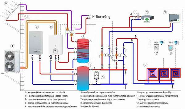 Vous pouvez également installer un système de chauffage combiné pour chauffer votre maison. Dans un tel système, la pompe à chaleur fonctionne simultanément avec la chaudière électrique et est utilisée comme source de chauffage supplémentaire.