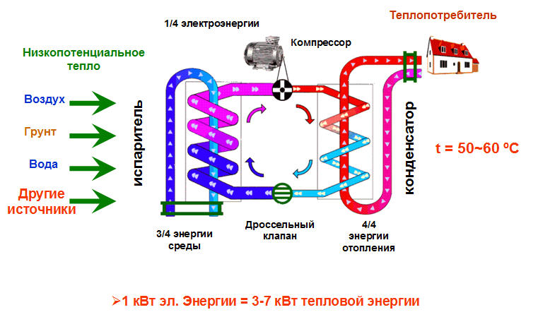 Le principe et le schéma de fonctionnement d'une pompe à chaleur, types