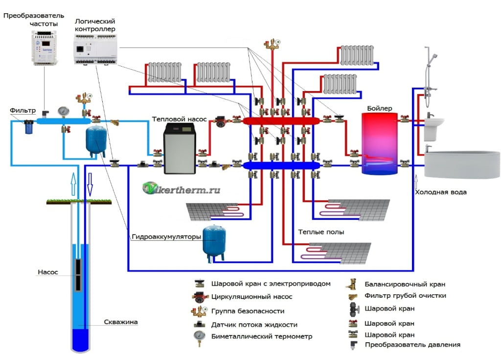 Le cycle de chauffage du liquide se poursuit tant que la pompe reçoit de l'électricité du réseau. La plus coûteuse, d'un point de vue économique, est la méthode des eaux souterraines, car pour l'installation de turbines et de collecteurs, il faudra forer des puits profonds ou changer l'emplacement du sol sur une grande parcelle de terrain.