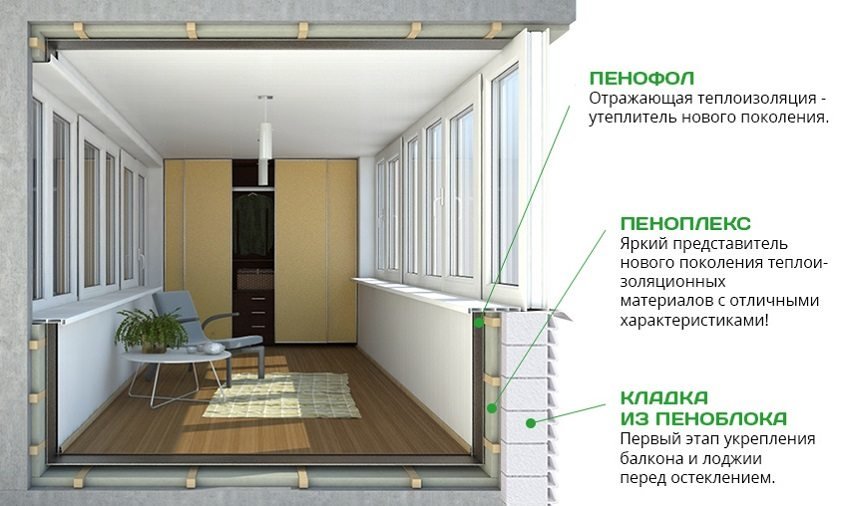 Il est également très important de veiller à l'avance à l'isolation maximale possible d'un balcon ou d'une loggia vitrée. Tout d'abord - sur la protection des murs extérieurs contre le dégagement de chaleur vers l'extérieur de la pièce et la pénétration du froid à l'intérieur