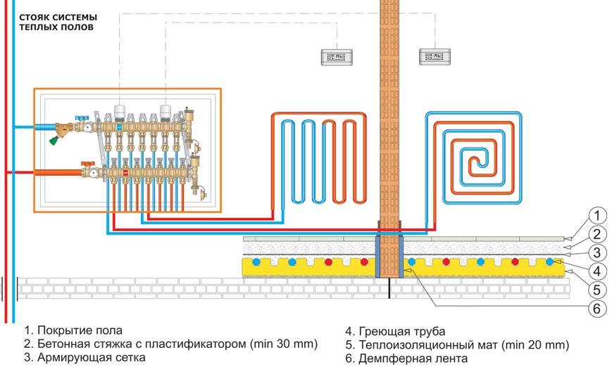 Plancher d'eau chaude dans une maison privée: schémas, règles de l'appareil + instructions d'installation