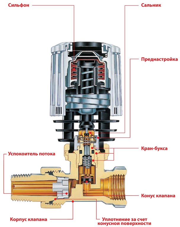 Le circuit de chauffage avec une tête thermique est plus pratique à utiliser. Ce dispositif augmente la durée de vie des équipements inclus dans le système de chauffage, augmente le niveau de sa sécurité incendie.