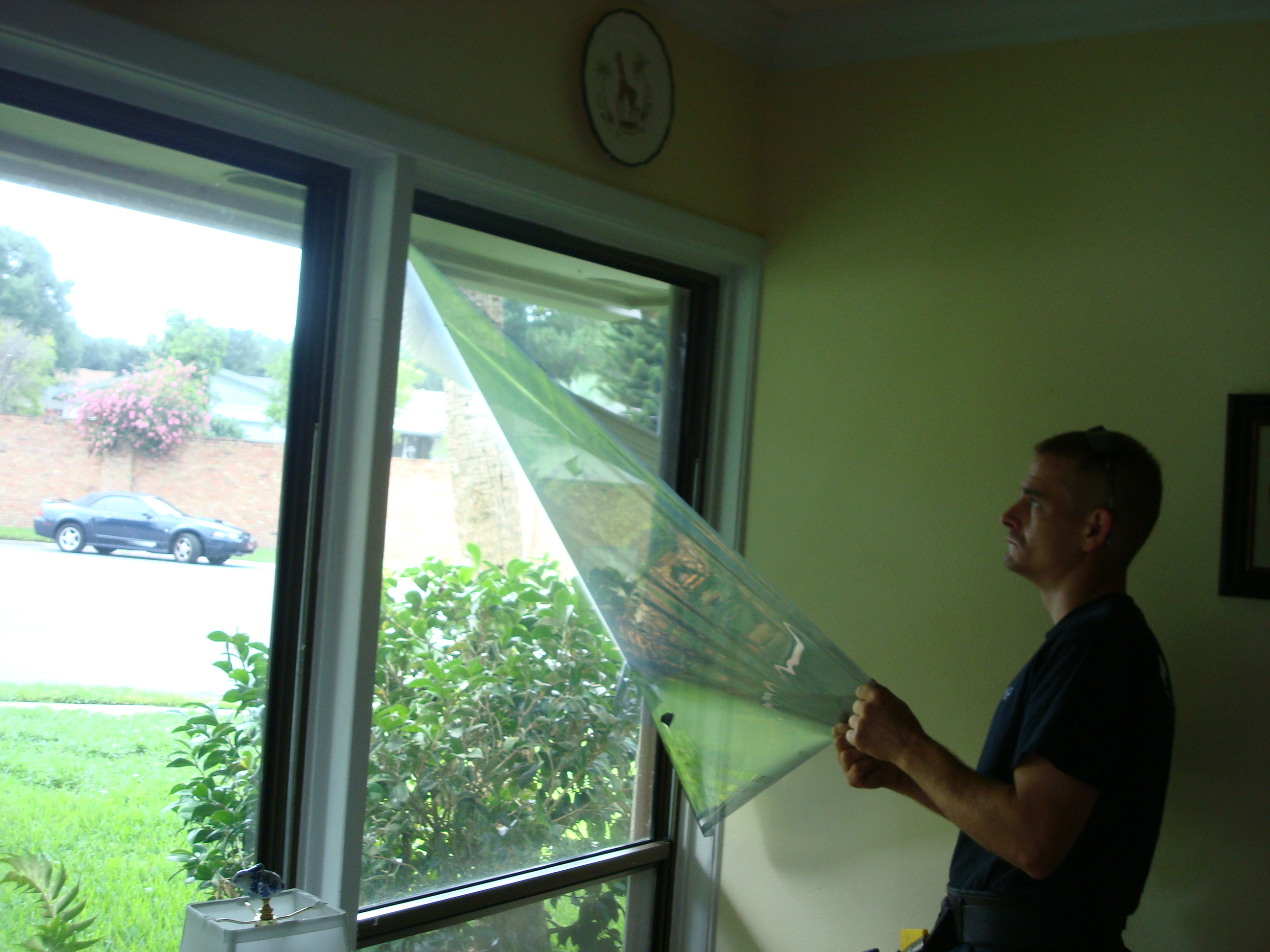 Le film est ensuite appliqué sur le verre. Ceci est fait avec soin afin que les plis horizontaux ne se produisent pas. Le film protecteur doit adhérer assez étroitement au verre afin d'éviter la formation d'espaces d'air.