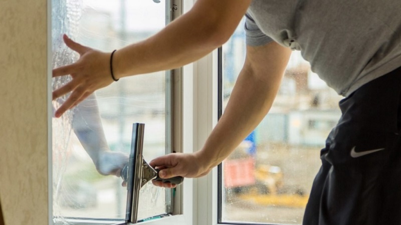 Pour éviter que la vitre ne soit trop humide, après y avoir appliqué une solution savonneuse, marchez le long de la vitre avec une spatule en caoutchouc.