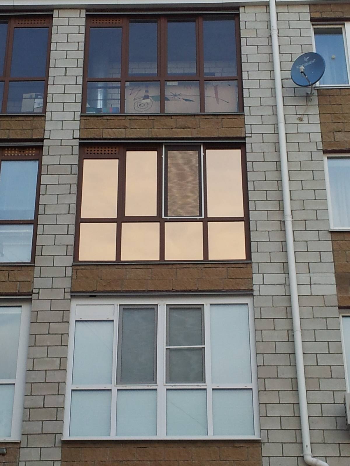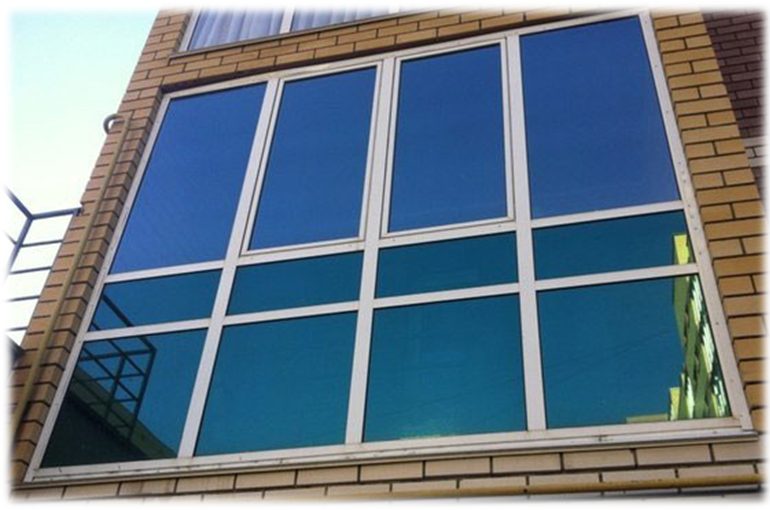 Si vous regardez du côté de la rue, vous pouvez voir que les fenêtres teintées miroir sont beaucoup plus attrayantes que les fenêtres ordinaires. Prendre soin d'eux n'est pas particulièrement difficile. Le film appliqué adhère fermement et le nettoyage de la fenêtre s'effectue de la même manière que si vous lavez du verre ordinaire.