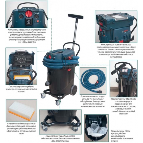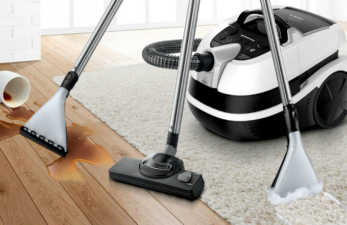 BGS 5ZOOO1 (300 / 1800 W): aspirateur avec système de filtration cyclonique, à commande électronique et un riche ensemble de buses (combinaison, poils souples pour surfaces dures, brosse de rembourrage et suceur plat - les pièces de rechange sont stockées dans un compartiment spécial du corps ). Bidon de 3 litres avec indicateur plein ; la puissance d'aspiration est réglable. Le tube est télescopique, avec une brosse turbo. Cordon d'alimentation avec fonction de rembobinage automatique, longueur - 9 M. Protégé contre la surchauffe, bouton de démarrage au pied sur le corps, roues qui tournent. En stock Filtre HEPA H13 (il existe une option autonettoyante). Bruit - 73 dB, poids - 6,7 kg. Prend en charge le stationnement vertical.