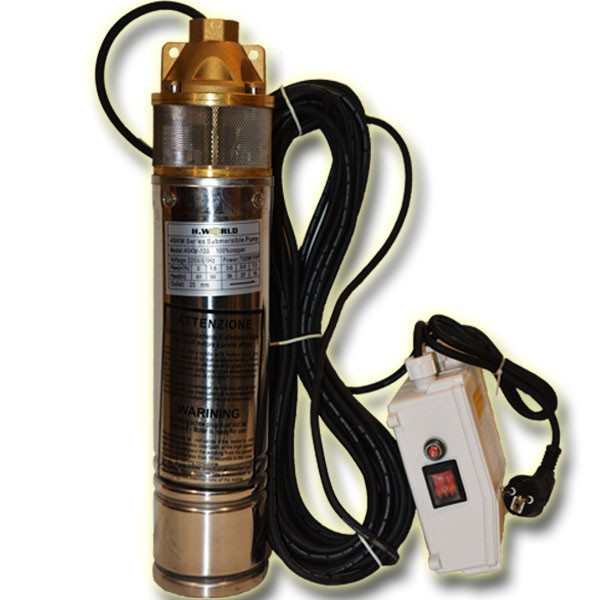 Cette station de puits submersible est équipée d'un moteur électrique asynchrone et d'une pompe centrifuge à quatre étages. L'appareil a un filtre en acier inoxydable et un boîtier en plastique. Le principal avantage est la présence d'un clapet anti-retour, d'un pressostat et d'un indicateur de débit. Le moteur consomme 1,2 kW, tout en assurant une alimentation en liquide avec une hauteur manométrique maximale de 48 m et une profondeur d'immersion de 12 m.