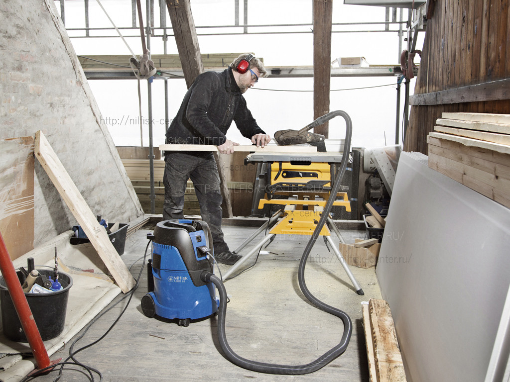 L'aspirateur appartient à la classe industrielle et dispose de l'équipement approprié : un filtre réutilisable avec un système de nettoyage par vibration, un moteur économique de 1,2 kW avec une turbine en métal et un réglage de puissance à 2 niveaux, une prise étanche à la poussière et à l'humidité pour une connexion synchronisée d'outils. En général, l'aspirateur peut être décrit comme un appareil peu coûteux et polyvalent pour le nettoyage à sec et humide et le nettoyage des débris de construction, y compris les gros.