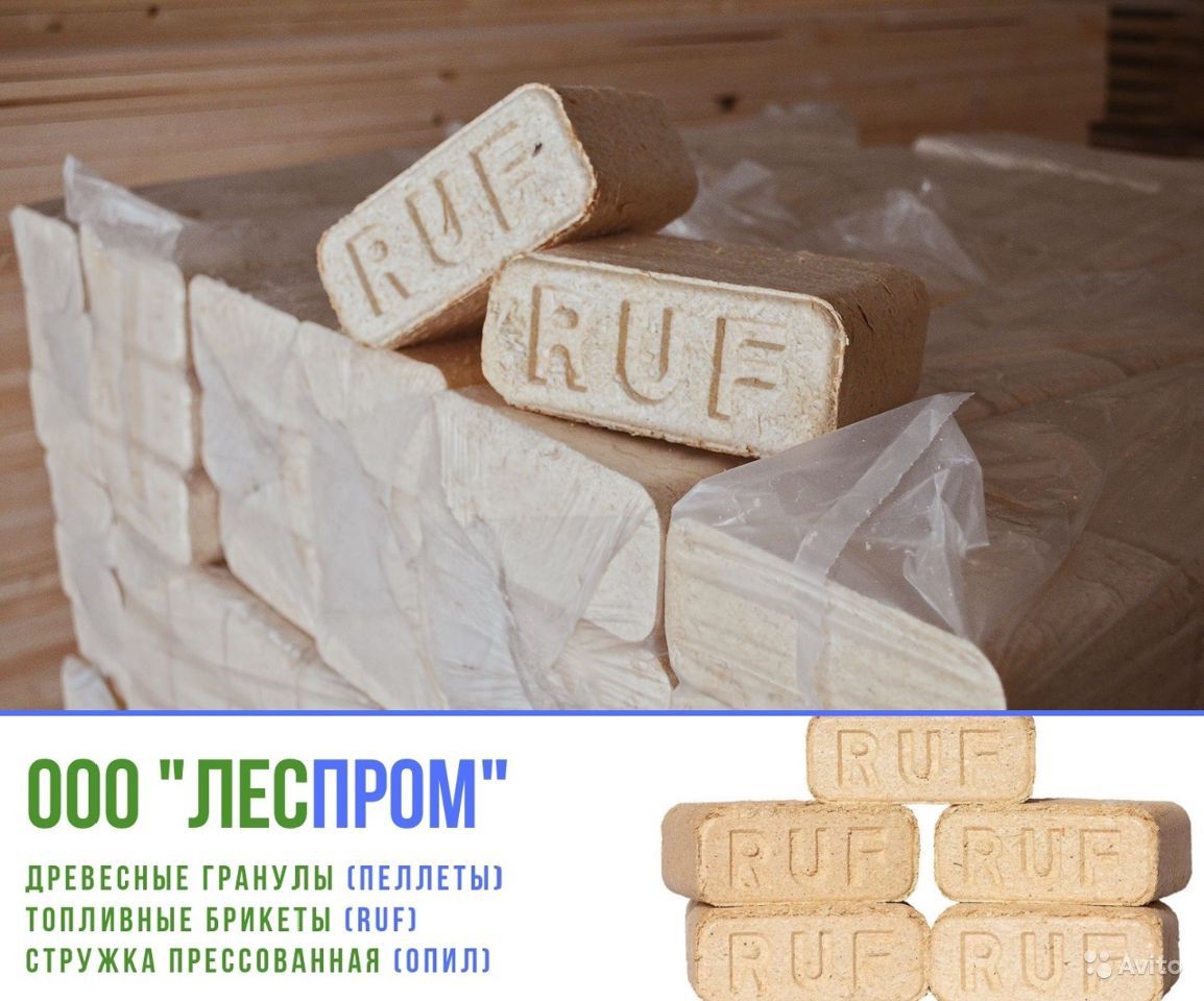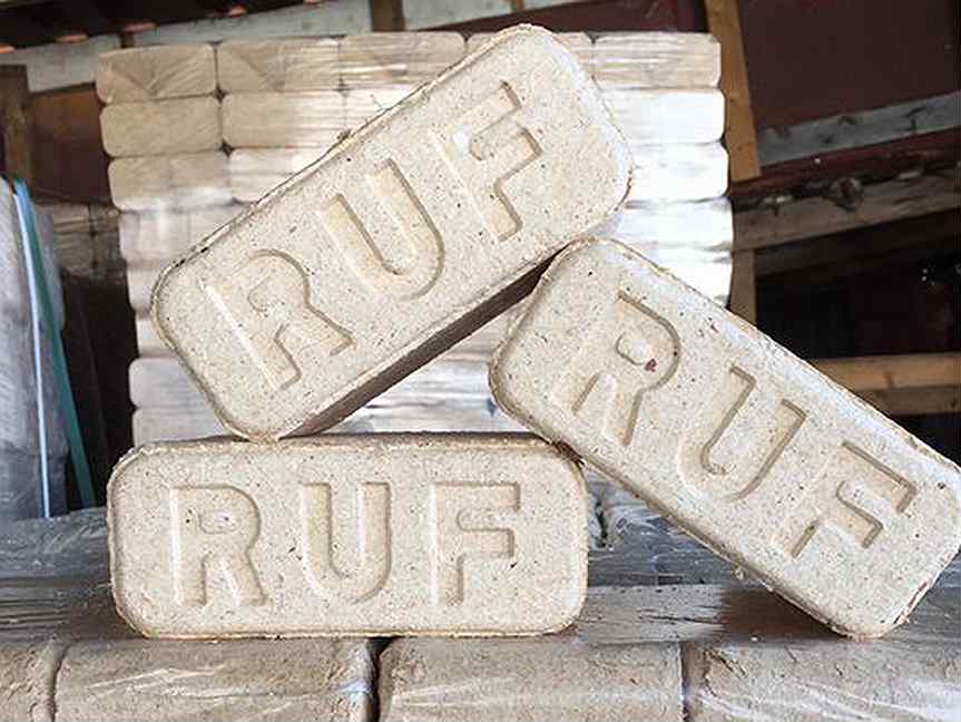 Briquettes combustibles à partir de sciure de bois ruf, sous forme de brique. Ils ont une petite taille et la densité la plus faible - 0,75-0,8 g / cm3.