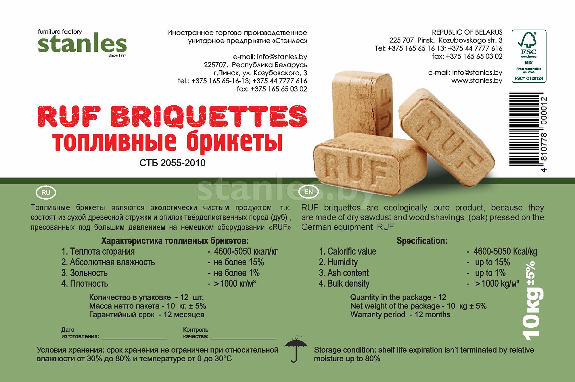 Briquettes combustibles RUF