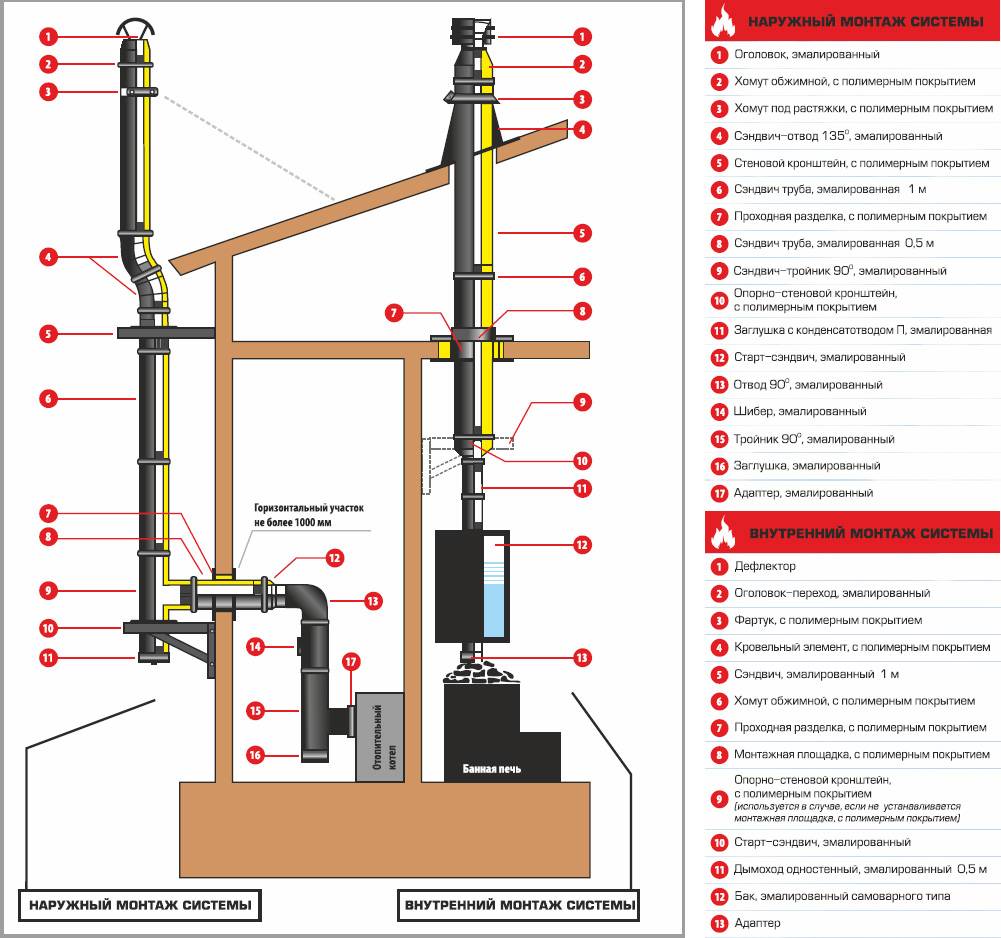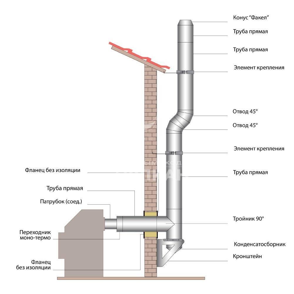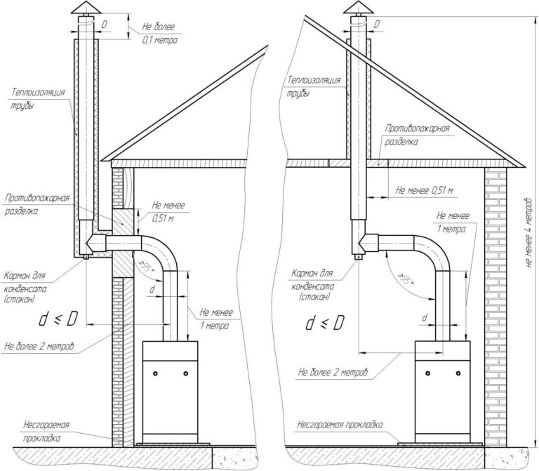 Rappelez-vous également que la distance entre le tuyau et le matériau de finition, le plafond, s'il est combustible, ne doit pas dépasser 250 mm. ou 50 millimètres. si le matériau est résistant au feu.