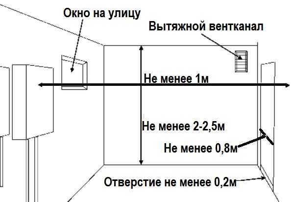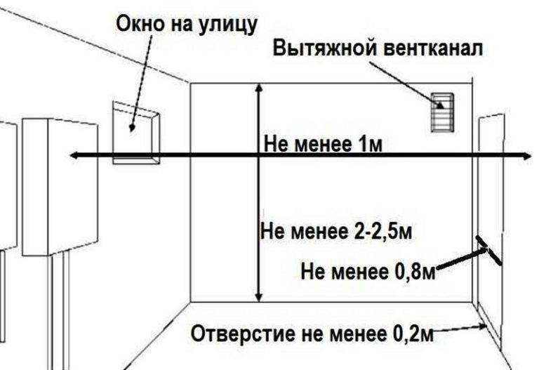 Il existe des exigences strictes pour la ventilation en termes de dimensions et de distances :