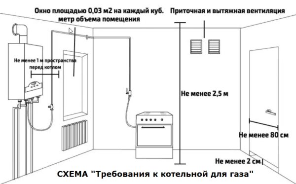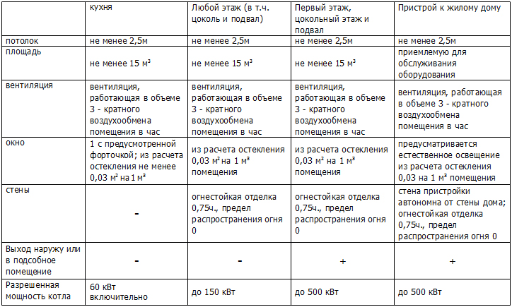 Ces exigences sont dictées pour la sécurité des personnes vivant dans la maison. De plus, cela vous permet d'utiliser l'équipement dans le mode le plus optimal. Le non-respect de ces exigences entraîne des incendies et des accidents, car la petite taille de la pièce avec une chaudière à gaz est très favorable à l'apparition d'une source d'incendie et à sa propagation ultérieure.