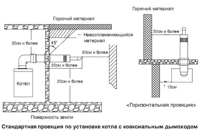 Important! Pour les chaudières de chauffage à cheminée coaxiale et à chambre de combustion fermée, la présence d'une fenêtre dans la chaufferie n'est pas nécessaire. La cheminée coaxiale d'une chaudière à gaz est réalisée selon le principe "pipe in pipe"