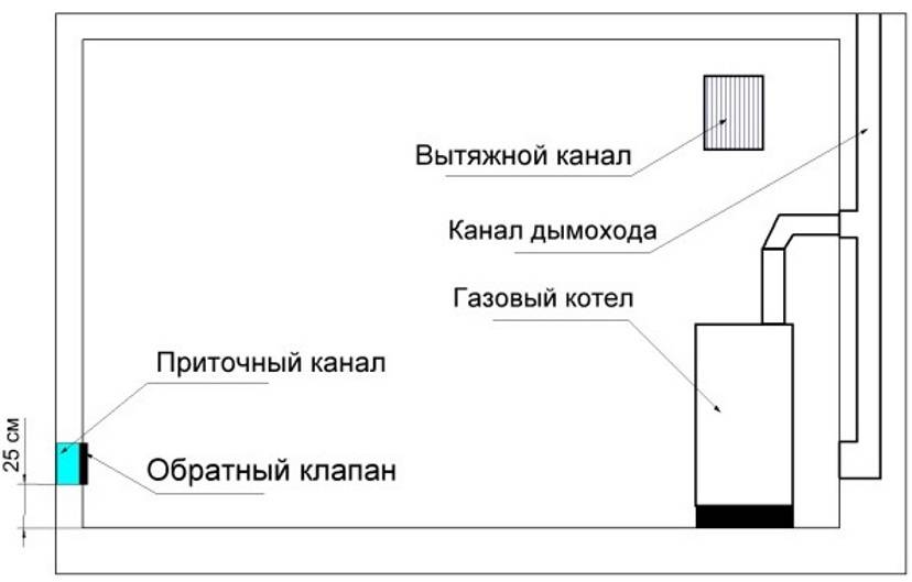 Normes de ventilation d'une chaufferie à gaz selon SNiP